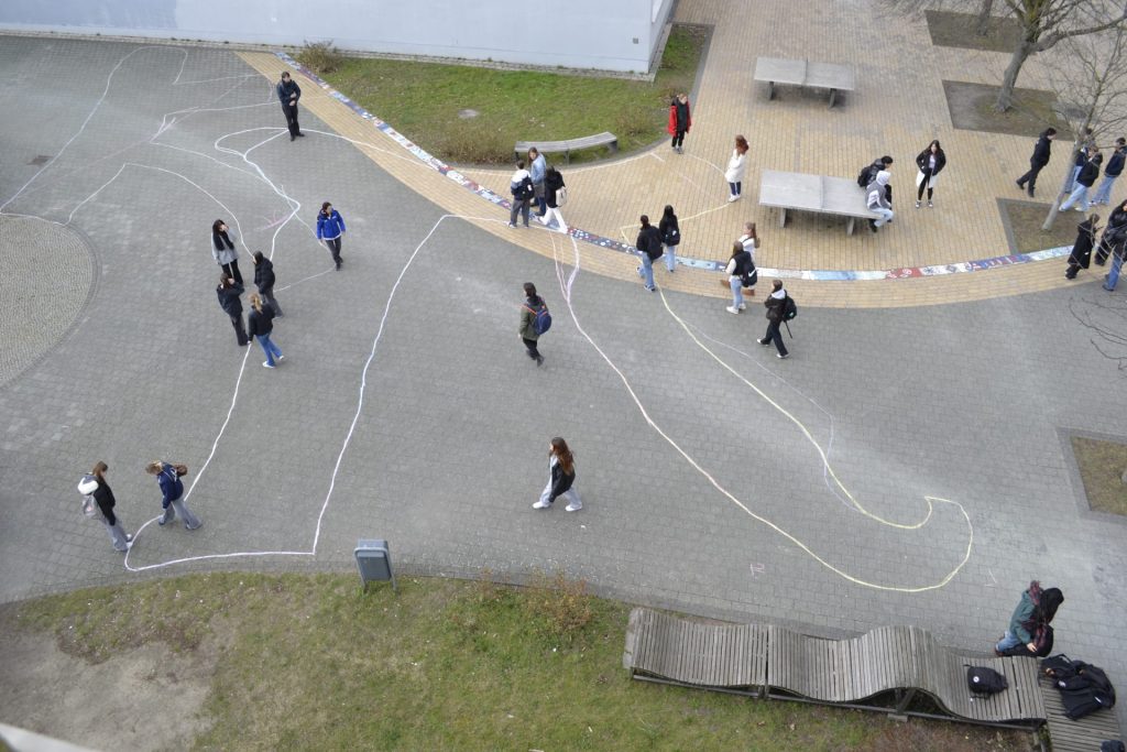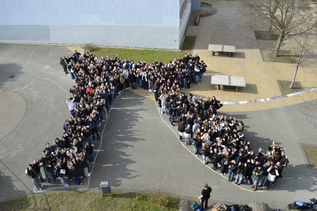 Die Erstplatzierten durften sich über ein von uns designtes T-Shirt freuen, während die Zweit- und Drittplatzierten Bücher und Schreibzeug erhielten. Am Ende des Tages haben wir uns zum Pi auf dem Schulhof versammelt.