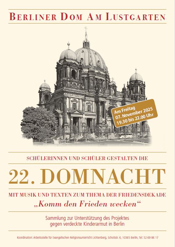 In diesem Jahr sind wieder 50 Schülerinnen und Schüler unserer Schule  mit dabei, um den Dom mit Chormusik aus 350 Stimmen zum klingen zu bringen. Schüler aus 8 Berliner und Brandenburger Schulen gestalten diesen bewegenden musikalischen Abend. Wir sind dabei.