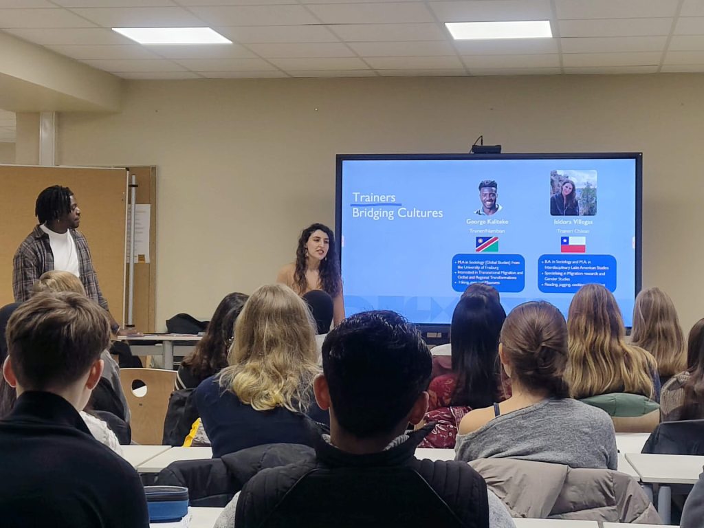 Die Schüler:innen der Leistungskurse Englisch im Jahrgang 11 erlebten am Dienstag, den 9.12.2025 und Donnerstag, den 11.12.2025 einen ganz besonderen Workshop: Bridging Cultures. Unterstützt wurden sie von Gästen aus Namibia und Chile der Organisation „Bridging Cultures – Intercultural Communication and Relocation“, die bereits regelmäßig mit Schüler:innen des Tagore-Gymnasiums Workshops durchführten.