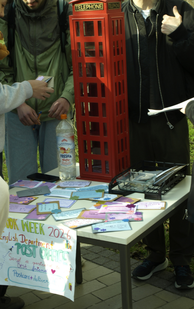 An Tag zwei unserer Book-Week steht das Fach Englisch im Mittelpunkt. Die 8ten bis 10ten Klassen üben sich im kreativen Schreiben, die 7t-Klässler:innen setzen sich mit Freundebüchern auseinander und die gesamte Schulgemeinschaft kann im Sinne des Wochenmottos “Liebe und Freundschaft” eine von der Klasse 9.6 selbst gestaltete Grußkarte kaufen, eine Nachricht an die beste Freundin oder den besten Freund schreiben und in den bereit gestellten Briefkasten werfen. Die Postboten der Klasse stellen den Brief noch am selben Schultag zu.