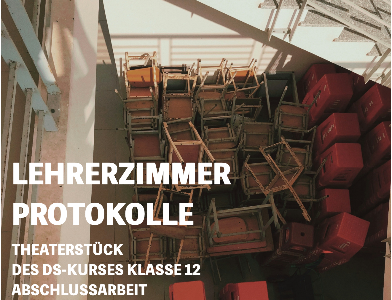 Drei Monate lang haben die Schülerinnen und Schüler des Abiturjahrgangs im Grundkurs Darstellendes Spiel bei Herrn Siegl mit großem Engagement an ihrem Abschlussprojekt gearbeitet. Entstanden ist ein ebenso kreatives wie unterhaltsames Theatererlebnis unter dem Titel „Lehrerzimmerprotokolle“.