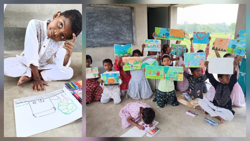Auf den Spuren Tagores begaben sich dann im April diesen Jahres auch vier Kolleg:innen unseres Gymnasiums nach Westbengalen/ Indien. Ziel der Reise war nicht nur ein Besuch des Tagore-Museums und der Visva-Bharati-Universität in Shantiniketan, sondern vor allem die Stärkung unserer partnerschaftlichen Beziehungen mit der Children‘s-Theatre-Academy, deren Schüler:innen wir ja bereits bei uns in Deutschland begrüßen durften. Dort erhielten wir einen Einblick in das Schulprojekt in einem kleinen Santal-Dorf. Santals gehören zu den Ureinwohnern Indiens und haben auch heute noch nicht den gleichen Zugang zu Bildung wie andere Bevölkerungsgruppen. In diesem Projekt haben die Schüler:innen die Möglichkeit Nachhilfe zu bekommen. Darüber hinaus werden sie, ganz im Sinne Tagores, in den Bereichen Tanz, Gesang und Theater gefördert.