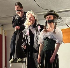 Schauspieler, die schreiend in den Theaterraum schreiten, ĂŒber StĂŒhle steigen und Zuschauende in die Handlung integrieren: Willkommen...